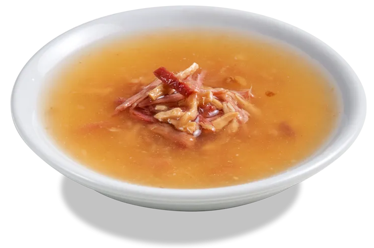 Caldo de pollo y ternera (84 %); carne de pollo (9 %); ternera (6 %); minerales (1 %).