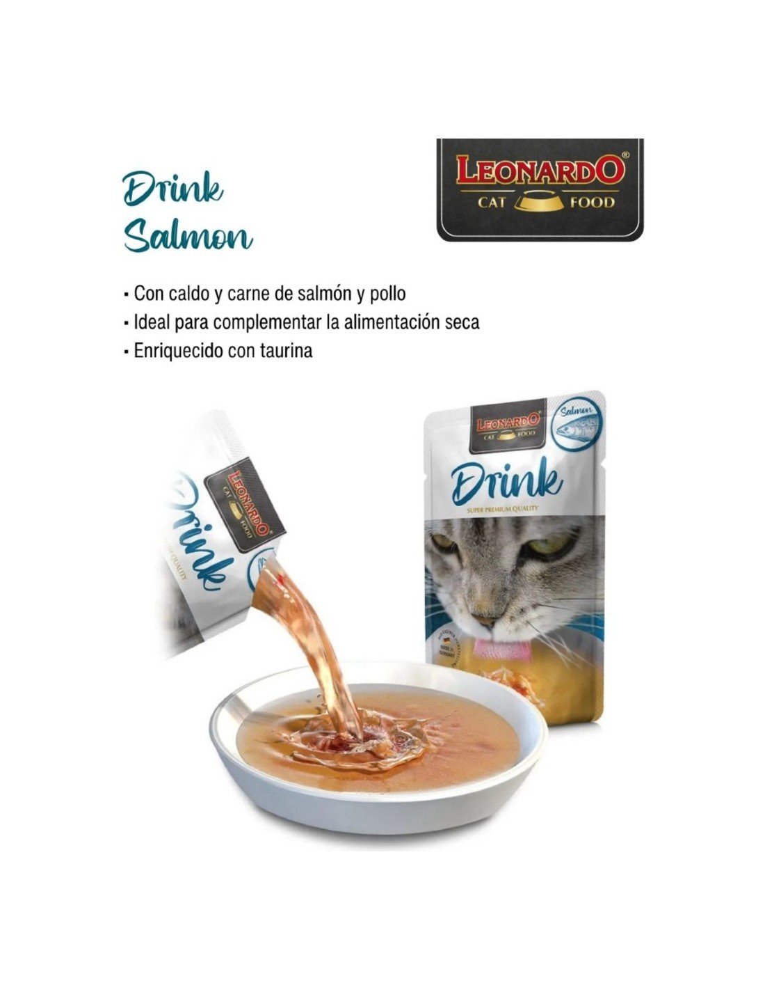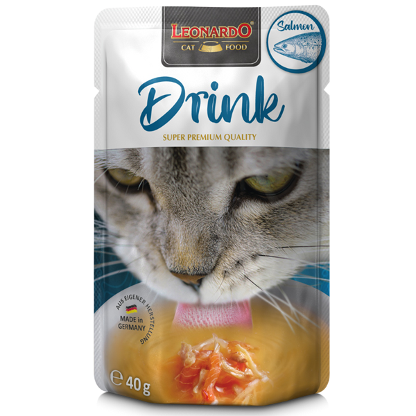 Gracias a su excelente sabor a salmón LEONARDO Drinks anima al gato a beber.