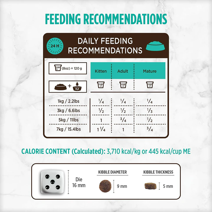 Calorie Content: 3,350kcal/kg or 400kcal/cup ME